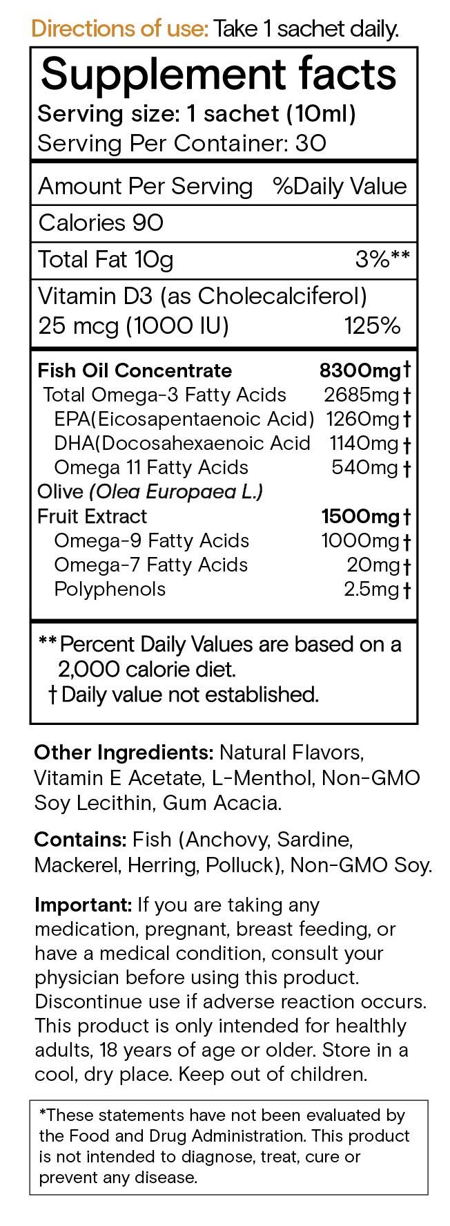 - Full-Spectrum Omega Blend (3, 7, 9, 11): Supports heart, brain, skin, and cellular health.*